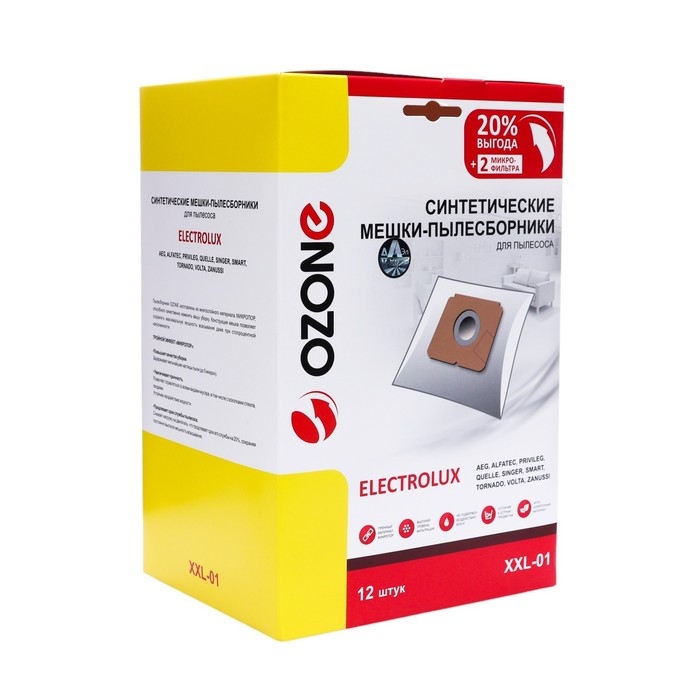 Мешок-пылесборник XXL-01 Ozone синтетические для пылесоса, 12 шт + 2 микрофильтра - это отличный выбор для тех, кто ценит качество и комфорт. Они обеспечат вам долгую и надежную службу, сохраняя ваш дом в безупречной чистоте.
