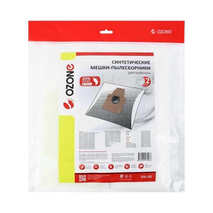 Мешок-пылесборник XXL-06 Ozone синтетические для пылесоса, 12 шт + 2 микрофильтра - это отличный выбор для тех, кто ценит качество и комфорт. Они обеспечат вам долгую и надежную службу, сохраняя ваш дом в безупречной чистоте.