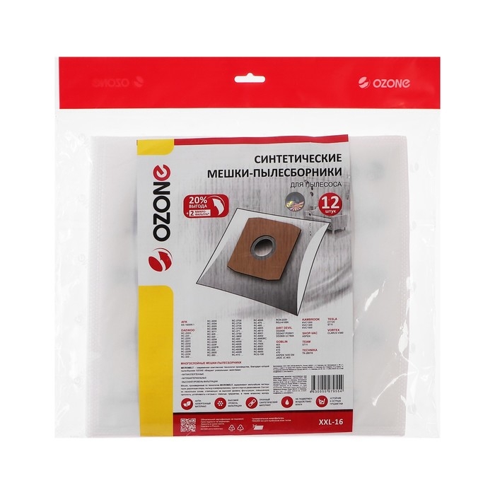 Мешок-пылесборник XXL-16 Ozone синтетические для пылесоса, 12 шт + 2 микрофильтра