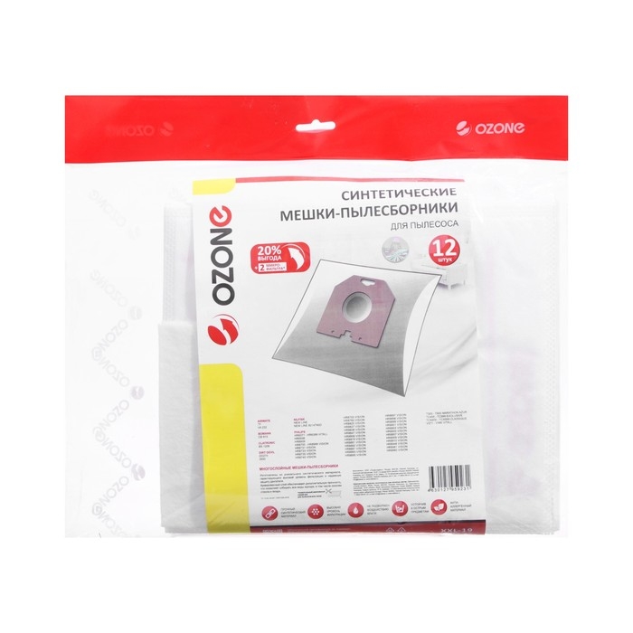 Мешок-пылесборник XXL-19 Ozone синтетические для пылесоса, 12 шт + 2 микрофильтра