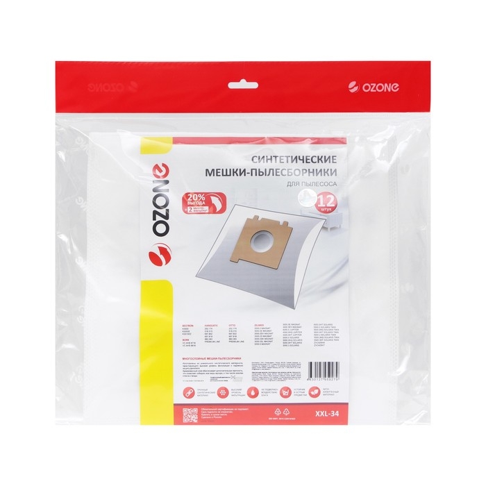 Мешок-пылесборник XXL-34 Ozone синтетические для пылесоса, 12 шт + 2 микрофильтра