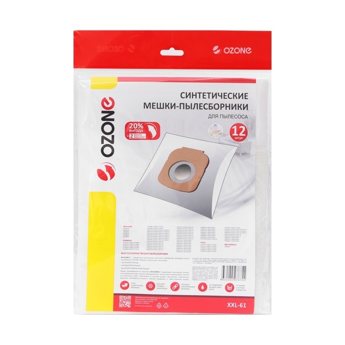 Мешок-пылесборник XXL-61 Ozone синтетические для пылесоса, 12 шт + 2 микрофильтра