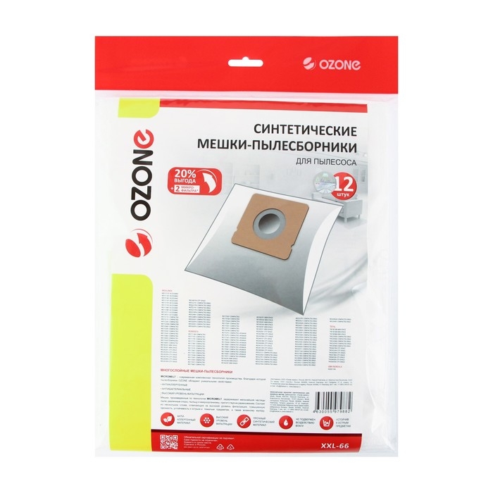 Мешок-пылесборник XXL-66 Ozone синтетические для пылесоса, 12 шт + 2 микрофильтра