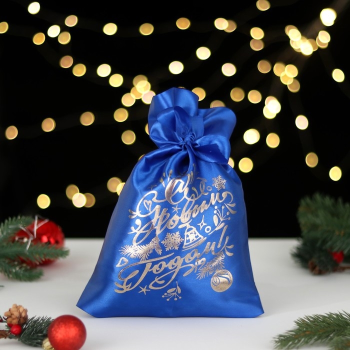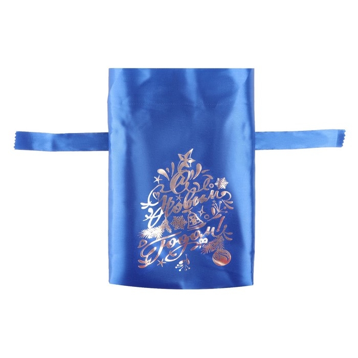 Мешок "С новым годом!", ёлка и игрушки, синий, 20 х 30см