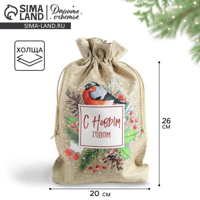 Мешок с термонаклейкой «Снегирь», 20 х 30 см +/- 1.5 см, Новый год