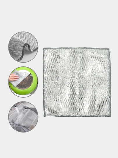 Универсальная узелковая сетка салфетка для уборки и мытья - ваш незаменимый помощник в домашних делах! Тряпка из металлической проволоки это находки для кухни салфетки для уборки кухни. Не потеряют своих свойств даже после многоразового использования Металлизированная тряпка с люрексом, не оставляет царапин, поэтому ее можно использовать для очистки различных поверхностей, включая стекла, зеркала, кухонную плиту, для казана, мебель и многое другое, а так же подойдет для чистки утюга и даже чистки картошки. При использовании моющих средств она хорошо пенится Эта железная тряпочка из люрекса для уборки однозначно можно использовать как салфетку для чистки посуды. Может устранить маслянистые загрязнения так же как и губка. Тряпочки для кухни безворсовые и не пускают ворс. Металлические волокна узелковой ткани обеспечивают жесткий абразивный эффект, который подходит для чистки жила и жировых отложений на кухонной утвари и варочных поверхностях/