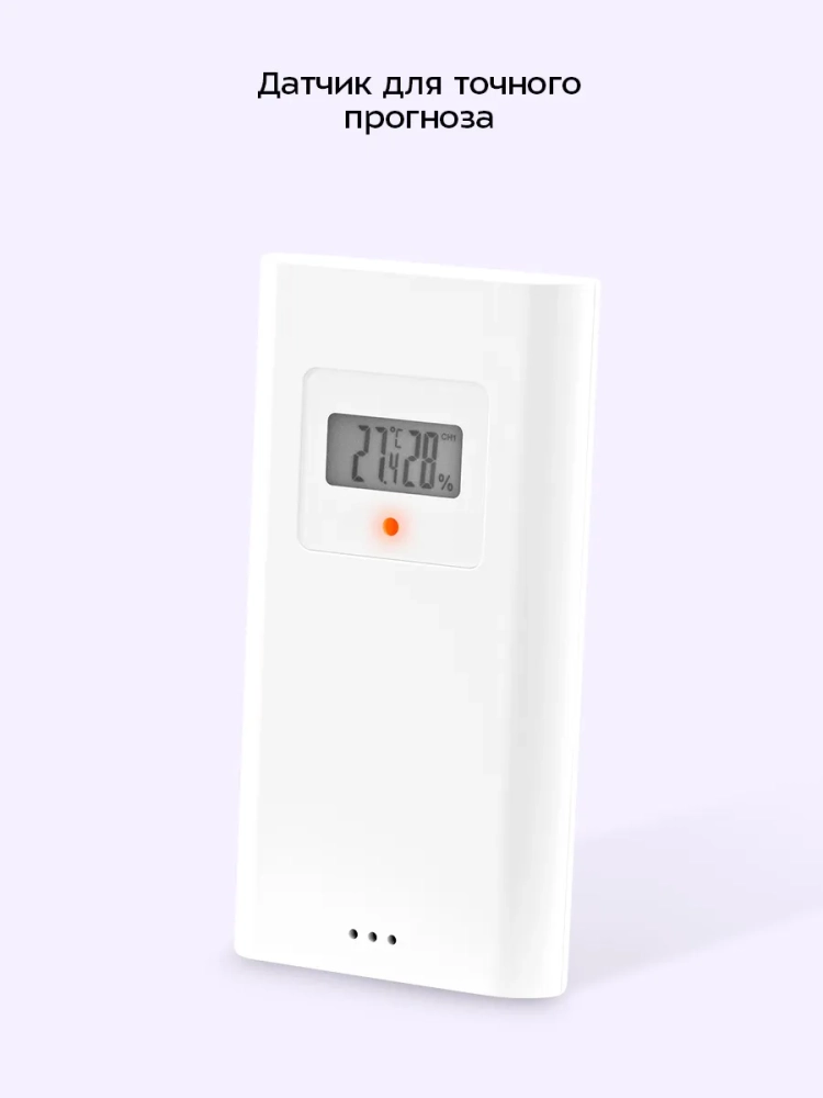 Метеостанция отображает данные на крупном цифровом экране, что делает использование устройства максимально удобным. Экран показывает прогноз погоды, уровень влажности и температуры как внутри дома, так и на улице. Благодаря беспроводному соединению с уличным датчиком, метеостанция не требует прокладки кабелей, что упрощает установку и эксплуатацию.