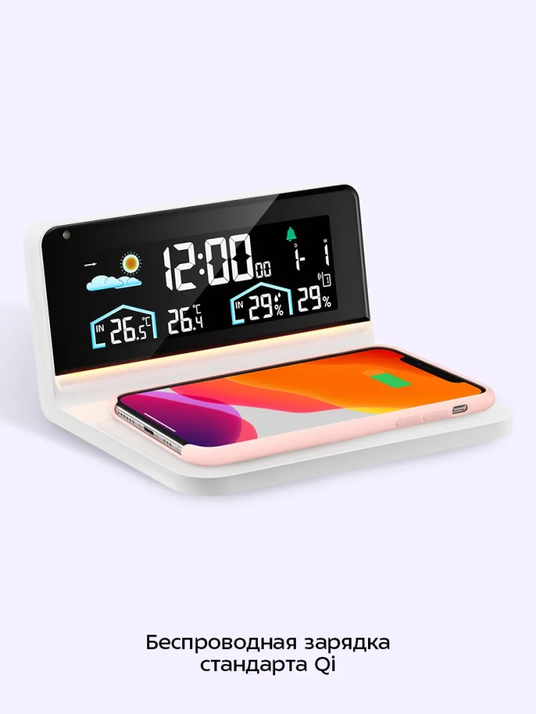 Зарядная панель устройства обеспечивает длительное время работы без необходимости частой замены батареек. Внешний вид метеостанции выполнен в современном стиле, что позволяет ей гармонично вписаться в интерьер любого дома.