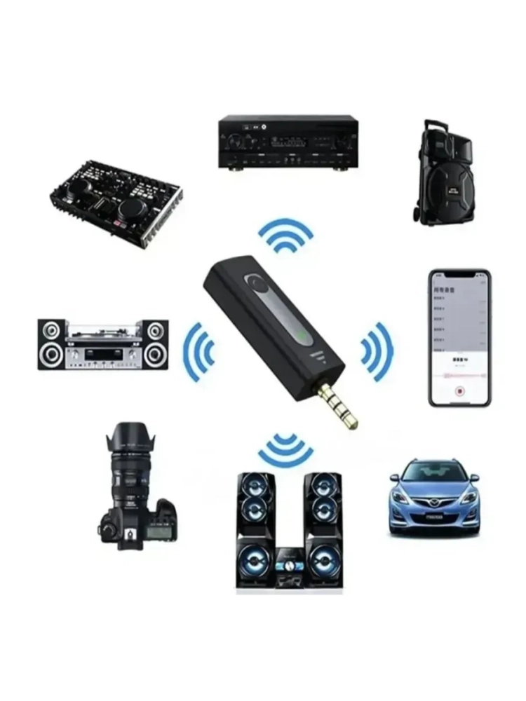 1. Для начала зажмите кнопку включения на приёмнике ( около 3-х сек ) и подключите его к звуковой карте, мобильным телефонам, динамикам и другим аудиоразъёмам, мигает зеленый индикатор, это означает что он перешел в режим подключения.
