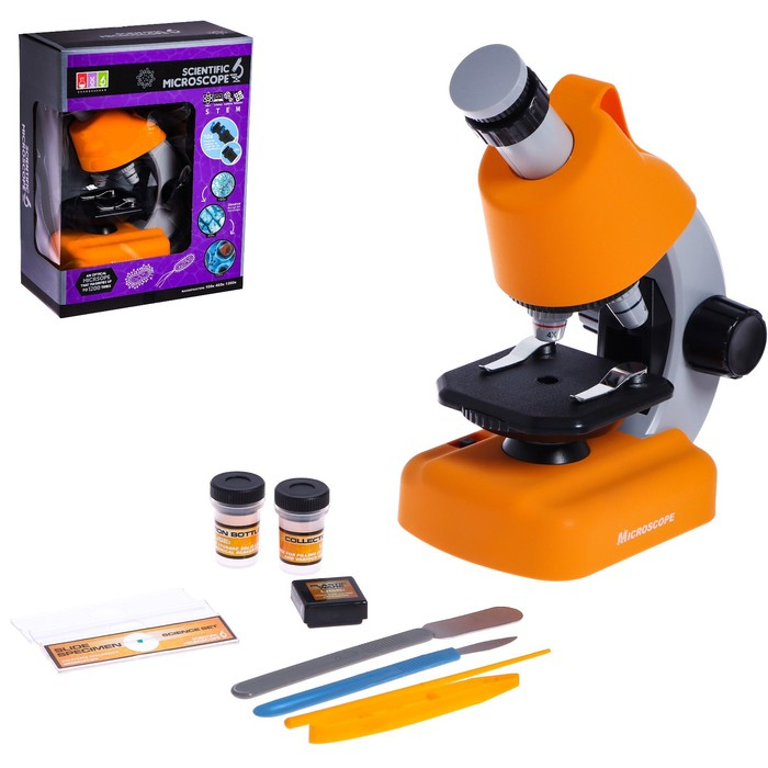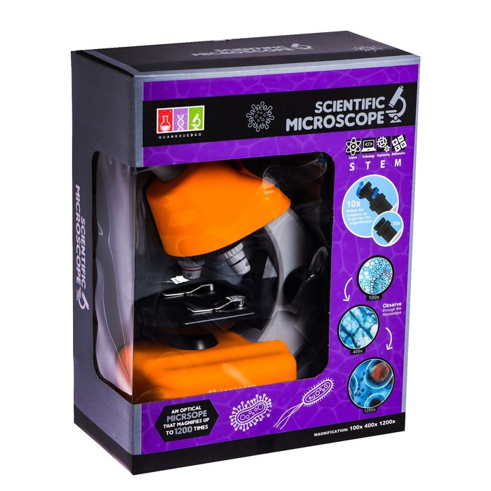 Микроскоп детский «Юный ученый» кратность х100, х400, х1200, подсветка, цвет жёлтый