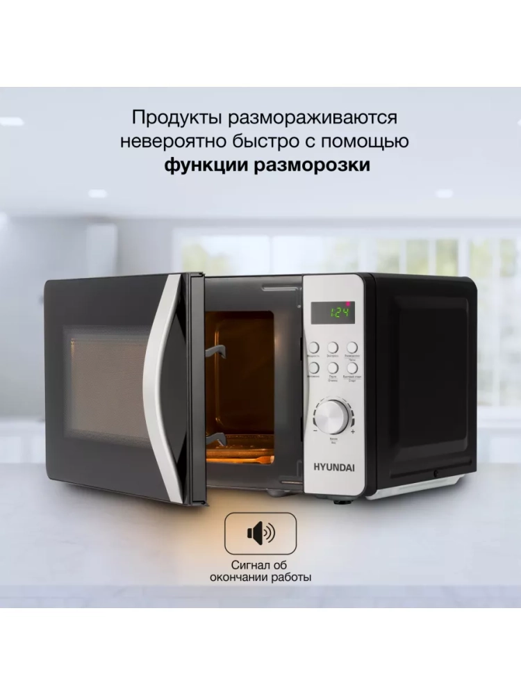 Микроволновая печь (СВЧ) Hyundai HYM-D2074 черный/серебристый, мощность 700Вт, объем 20л, покрытие камеры эмаль легкой очистки, электронное управление