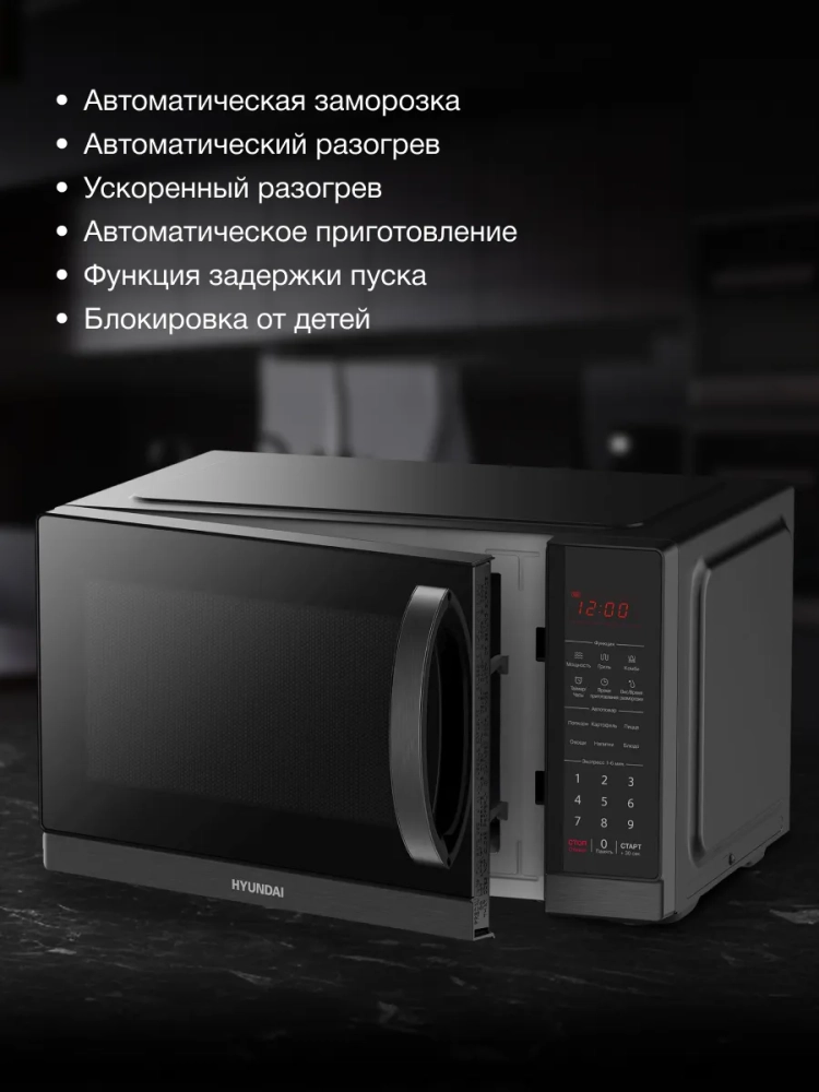 Микроволновая печь (СВЧ) Hyundai HYM-D3011 черный, мощность 900Вт, объем 25л, электронное управление.