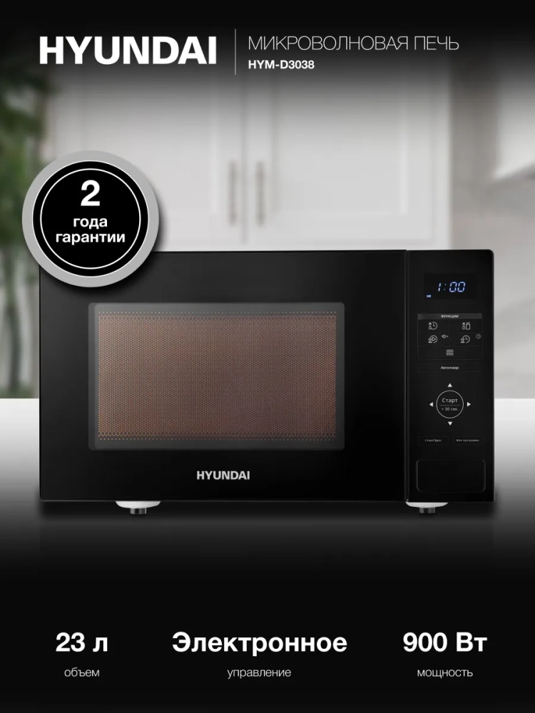 Микроволновая печь Hyundai HYM-D3038 - воплощение современной функциональности и удобства. С объемом в 23 литра она идеально подходит для разогрева и приготовления разнообразных блюд, сочетая в себе мощность, интуитивное управление и стильный дизайн. Cтанет надежным помощником на вашей кухне, предоставляя широкие возможности для кулинарных экспериментов.