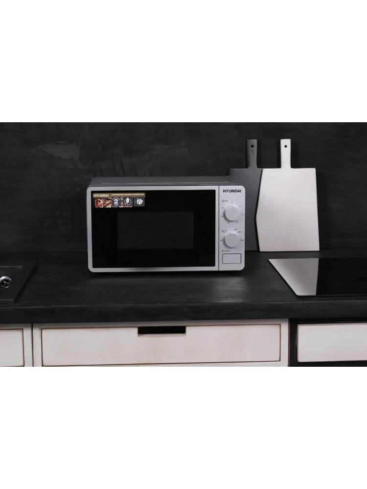 Микроволновая печь (СВЧ) Hyundai HYM-M2001 серебристый/черный, мощность 700Вт, объем 20л, покрытие камеры эмаль легкой очистки, механическое управление .