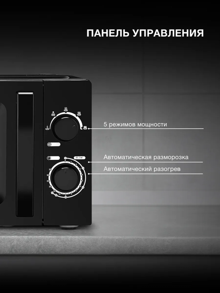 Микроволновая печь (СВЧ) Hyundai HYM-M2008 черный, мощность 700Вт, объем 20л, покрытие камеры эмаль легкой очистки, механическое управление.
