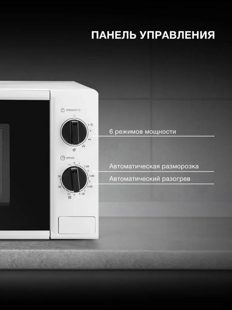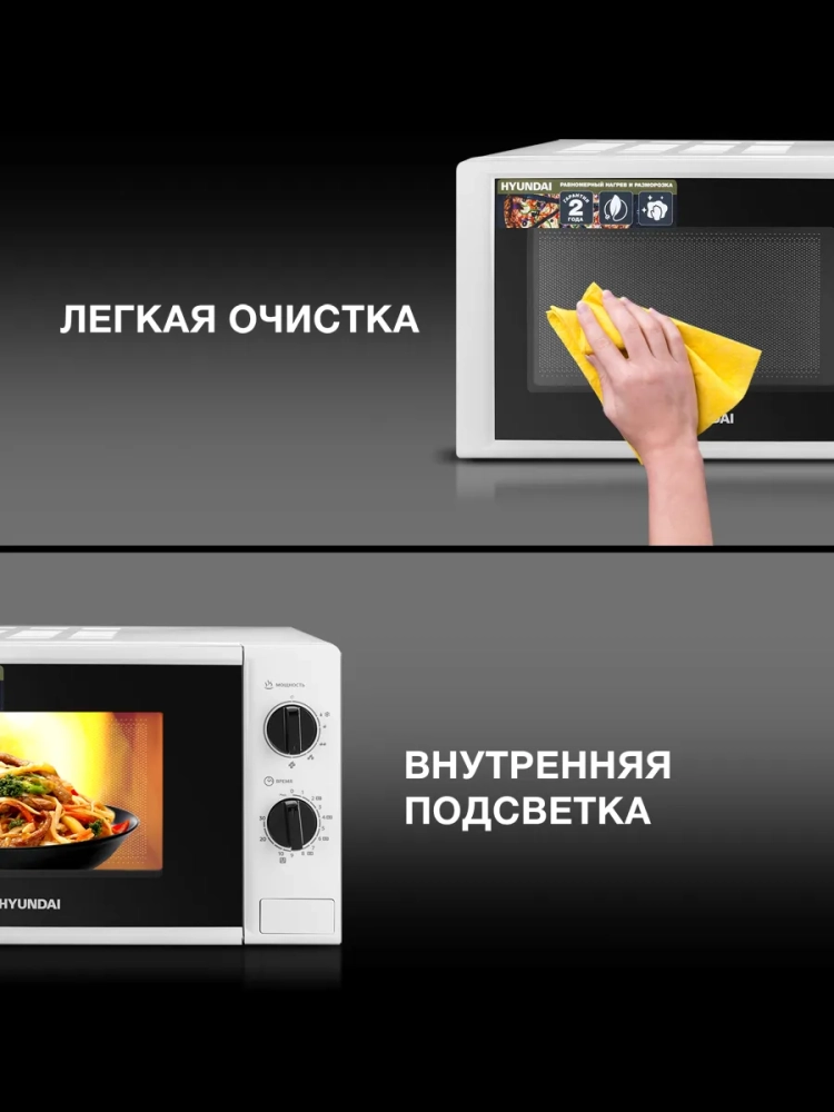Микроволновая печь (СВЧ) Hyundai HYM-M2048 белый, мощность 700Вт, объем 20л, механическое управление.