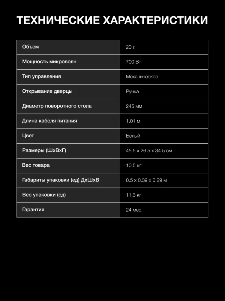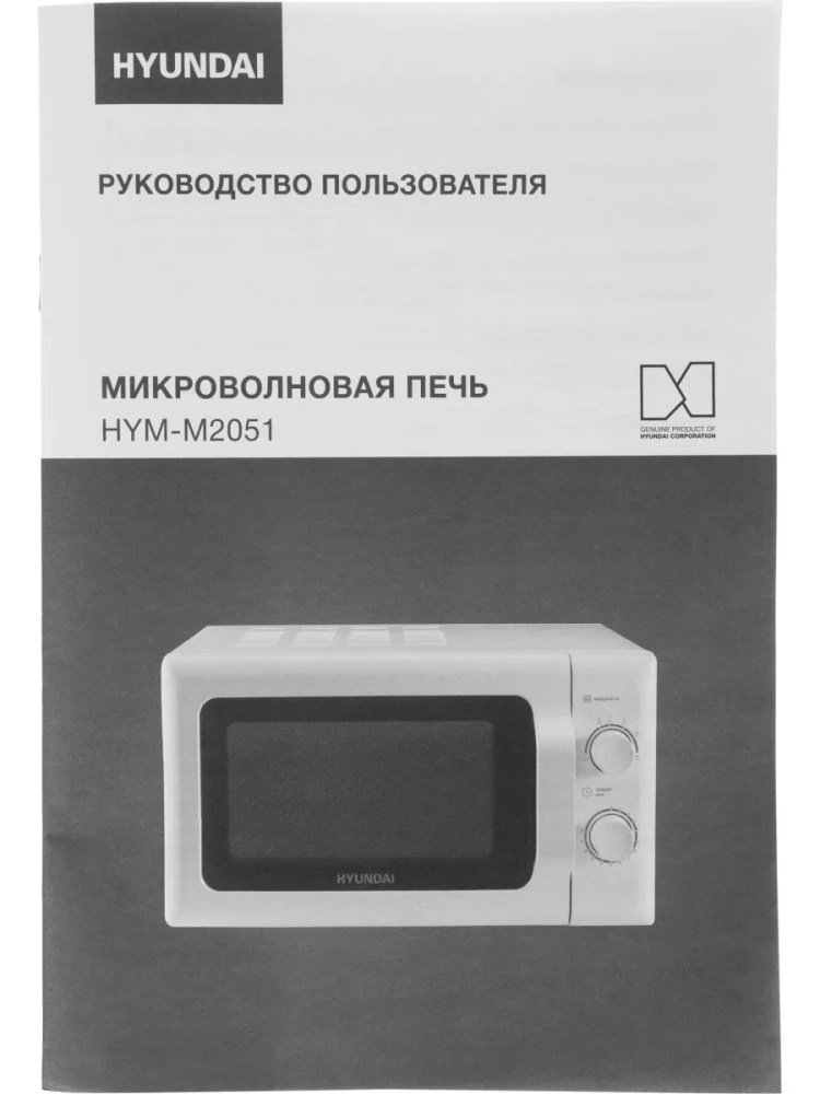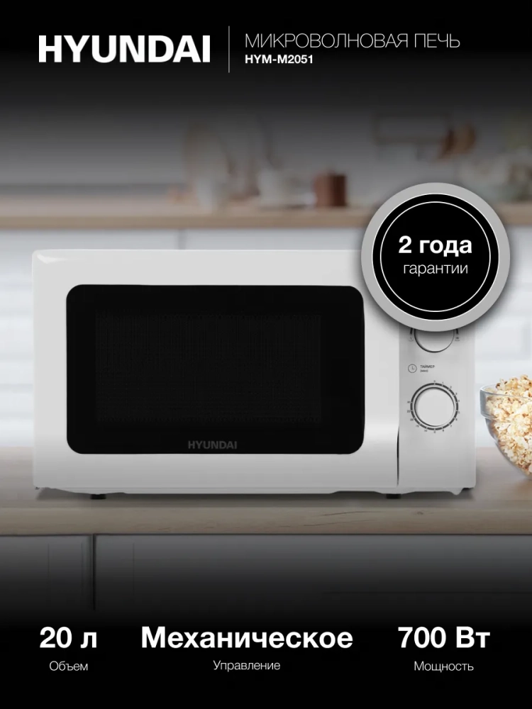 Микроволновая печь (СВЧ) Hyundai HYM-M2051 белый, мощность 700Вт, объем 20л, механическое управление.