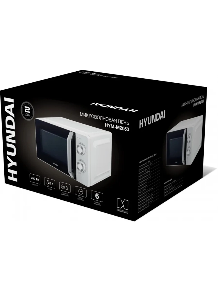 Микроволновая печь (СВЧ) Hyundai HYM-M2053 белый/серебристый, мощность 700Вт, объем 20л, механическое управление .