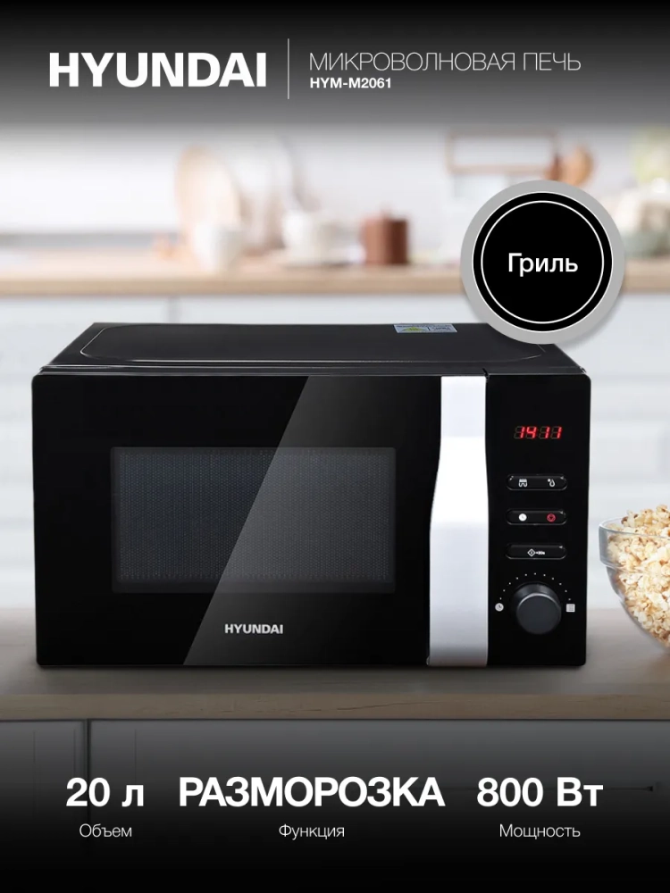 Микроволновая печь Hyundai HYM-M2061 сочетает в себе стильный дизайн, современные технологии и удобство использования. Объем 20 литров и мощность 700 Вт делают её идеальным выбором для повседневных задач — от разогрева до сложных рецептов.