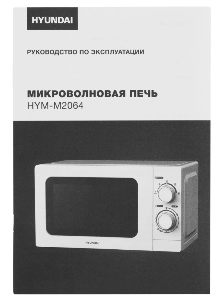 Микроволновая печь (СВЧ) Hyundai HYM-M2064 белый, мощность 700Вт, объем 20л, покрытие камеры эмаль, механическое управление
