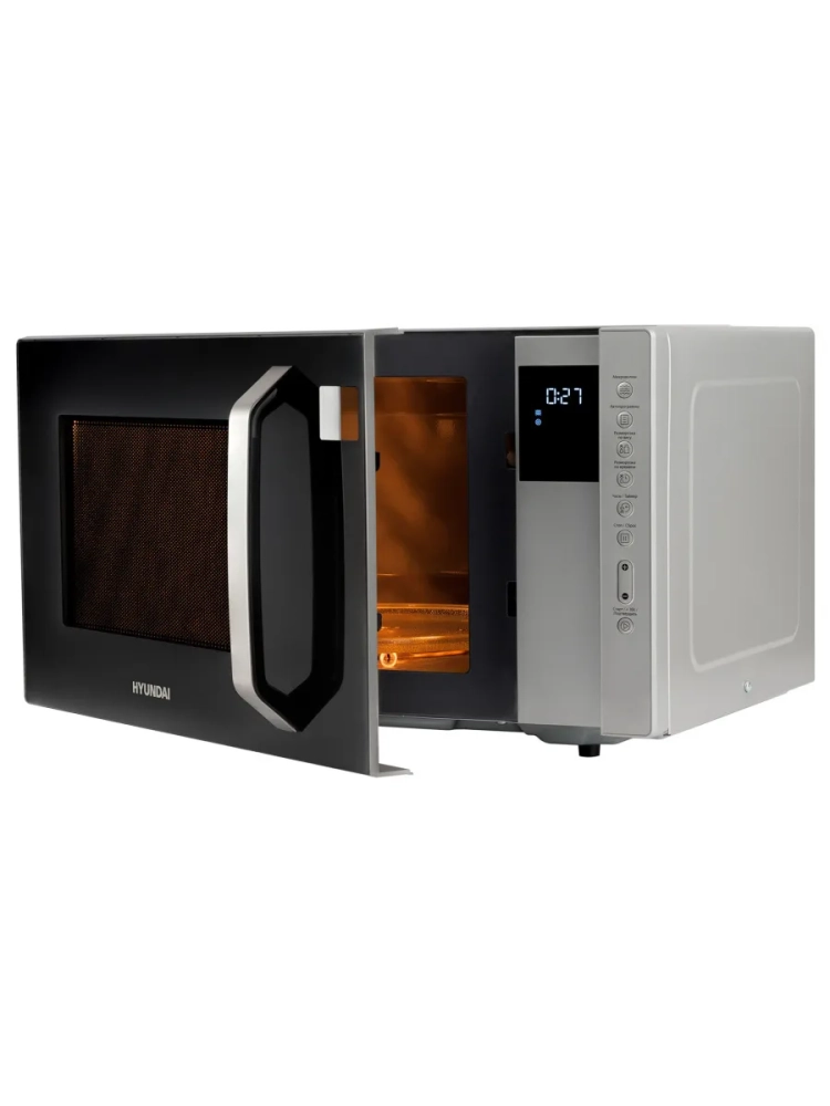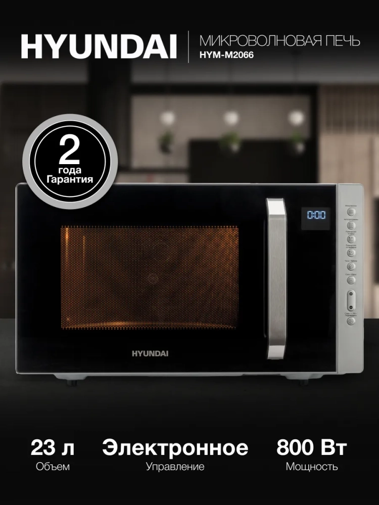 Микроволновая печь (СВЧ) Hyundai HYM-M2066 серебристый, мощность 800Вт, объем 23л, покрытие камеры эмаль легкой очистки, электронное управление.