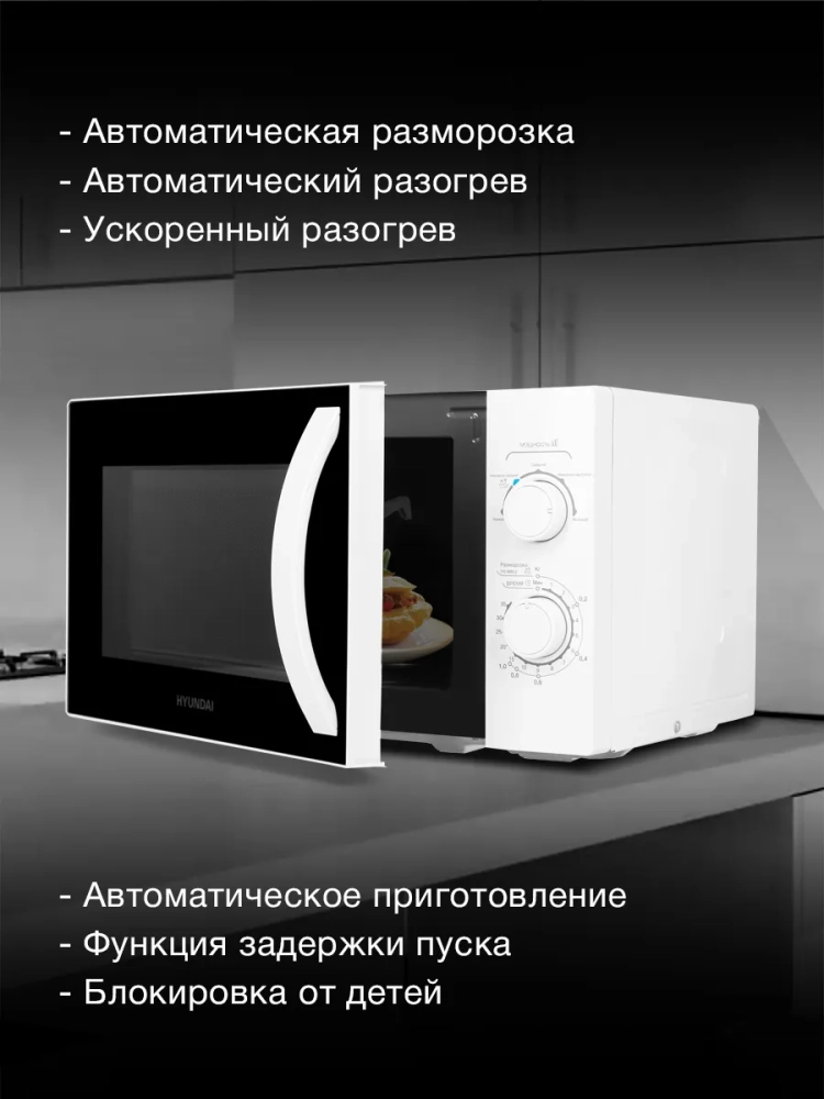 Микроволновая печь (СВЧ) Hyundai HYM-M2067 белый, мощность 700Вт, объем 20л, механическое управление