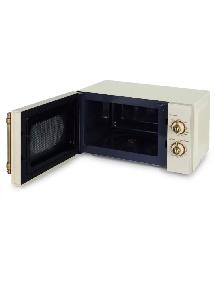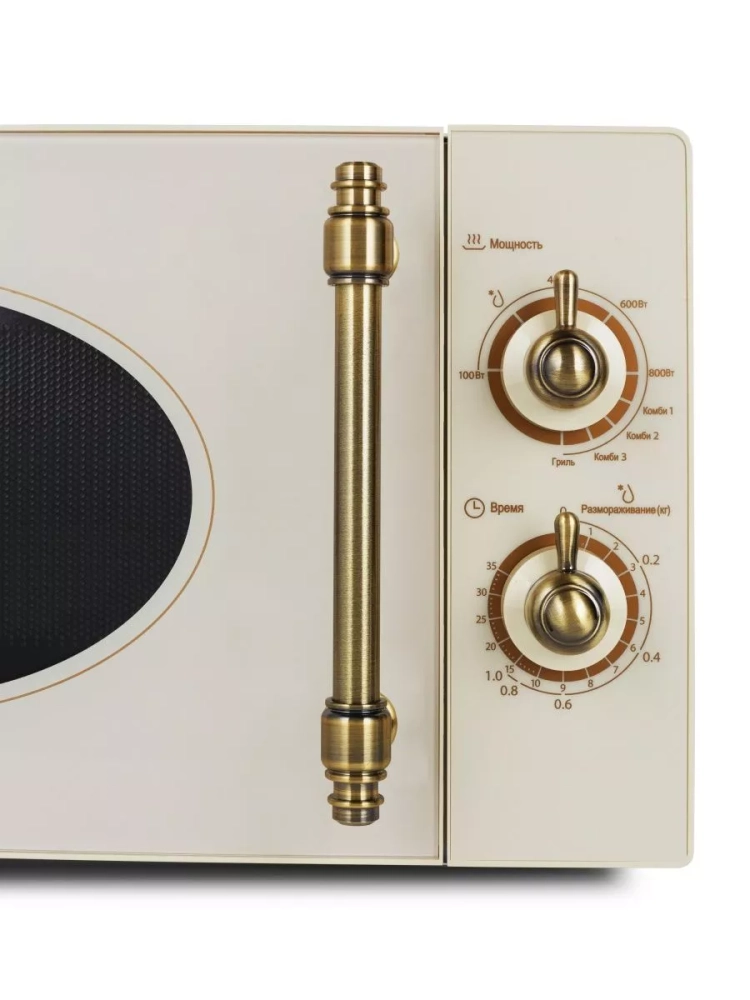 Стильная микроволновая печь Midea MG820CJ9-I2 с кварцевым грилем в ретро дизайне идеально впишется в интерьер вашей кухни и станет незаменимой помощницей, которая сэкономит ваше время. Цвет - слоновая кость. Объема в 20 литров будет достаточно для приготовления полноценного блюда. Внутренняя поверхность с покрытием эмалью Smart Clean устойчива к появлению царапин и легко очищается от загрязнений, благодаря чему прибор является простым в уходе, а срок его службы существенно продлевается. Увеличенная мощности микроволн 800 Вт ускорит разогрев блюда, обеспечит равномерную разморозку продукта, а функция гриля мощностью 1000Вт придаст вашим кулинарным шедеврам изумительную вкусную хрустящую корочку. Решётка для гриля входит в комплект. Функция автоматического размораживания позволяет сэкономить время. Внутреннее освещение камеры позволяет даже при закрытой дверце визуально определить степень готовности блюда. Дверца открывается при помощи ручки.