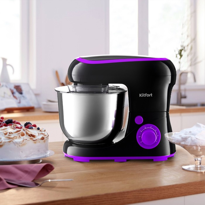Миксер Kitfort КТ-3046-1, планетарный, 1300 Вт, 5 л, 6 скоростей, черно-фиолетовый