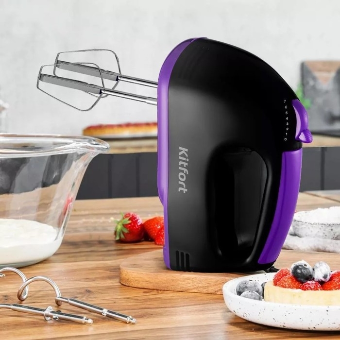 Миксер Kitfort КТ-3404, ручной, 100 Вт, 7 скоростей, чёрно-фиолетовый