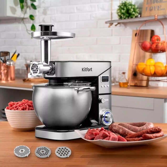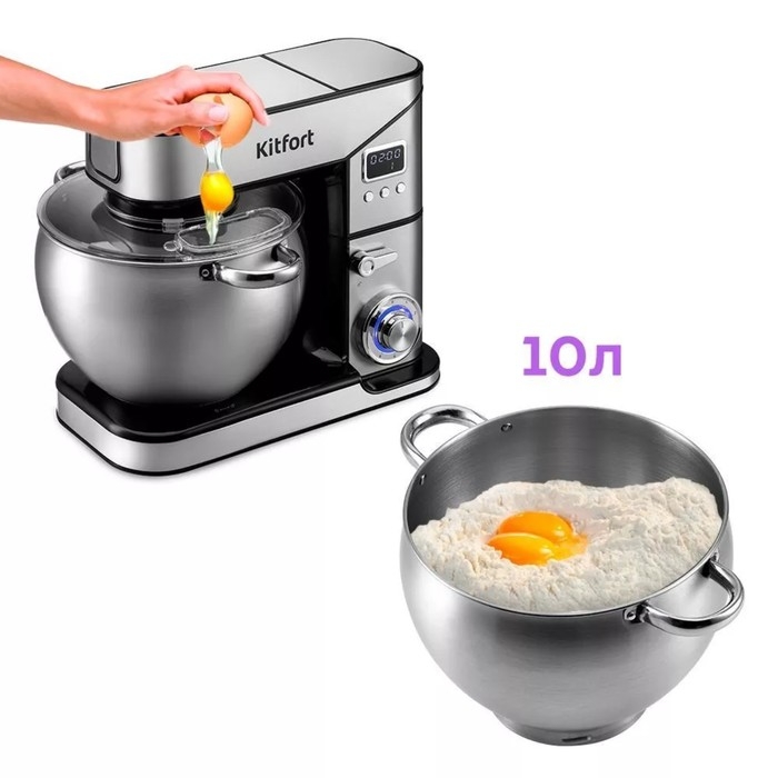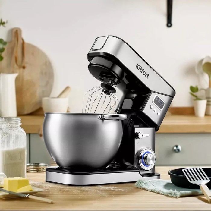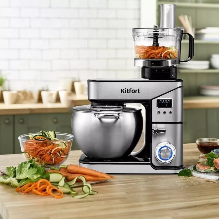 Миксер Kitfort КТ-3413, планетарный, 2000 Вт, 10/2/1.5 л, 6 скоростей, серебристый