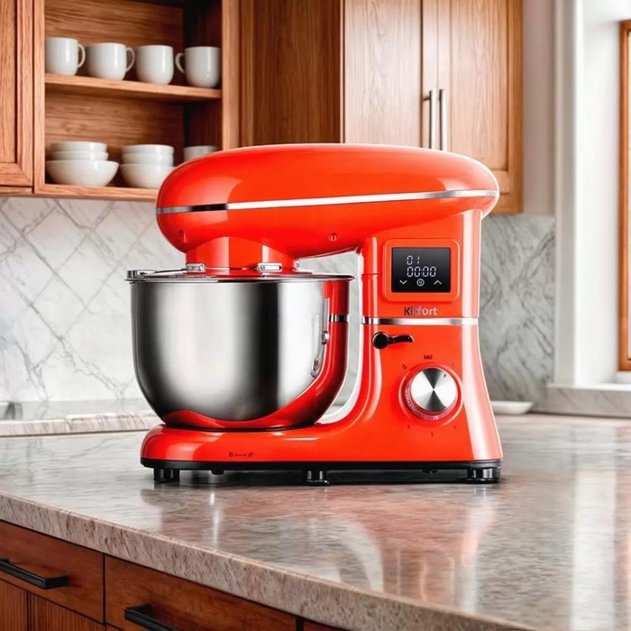 Миксер Kitfort КТ-3443, планетарный, 1400 Вт, 5.8 л, 6 скоростей, красный
