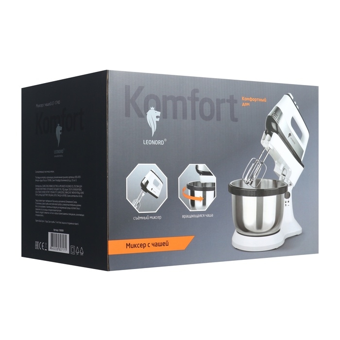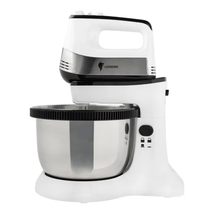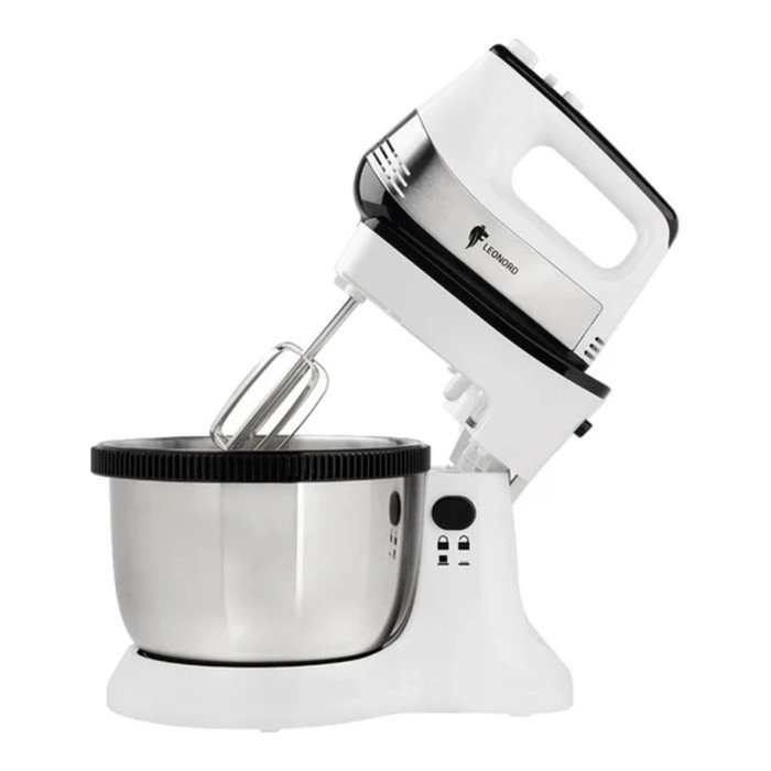 Миксер Leonord LE-1740, ручной/стационарный, 600 Вт, 4 л, 5 скоростей, режим "турбо", белый