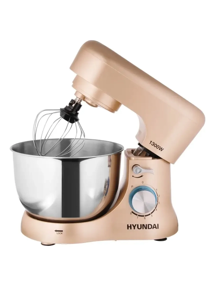 Миксер планетарный Hyundai HYM-S5551 бежевый, мощность 1300Вт, количество скоростей 8, насадок 3.