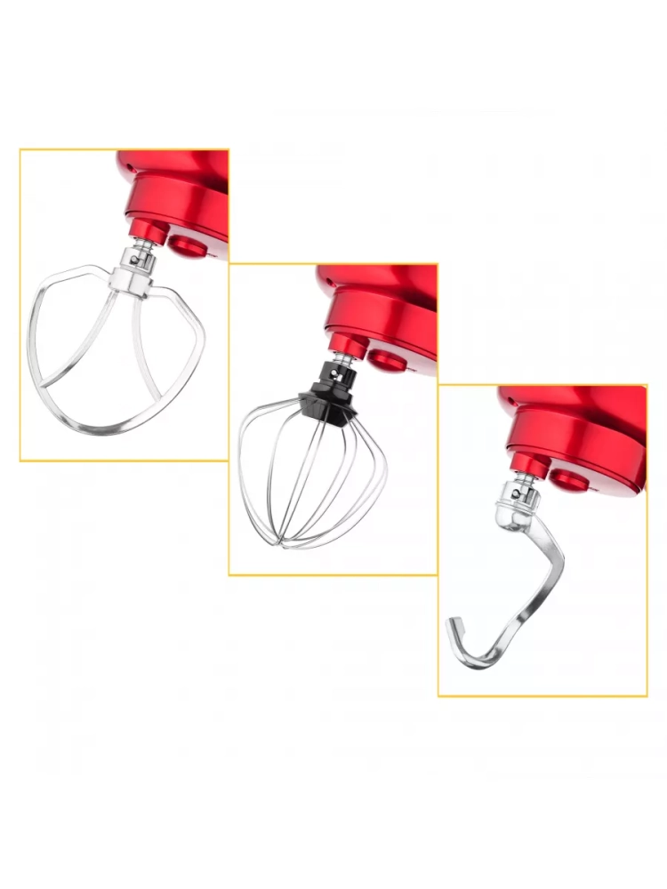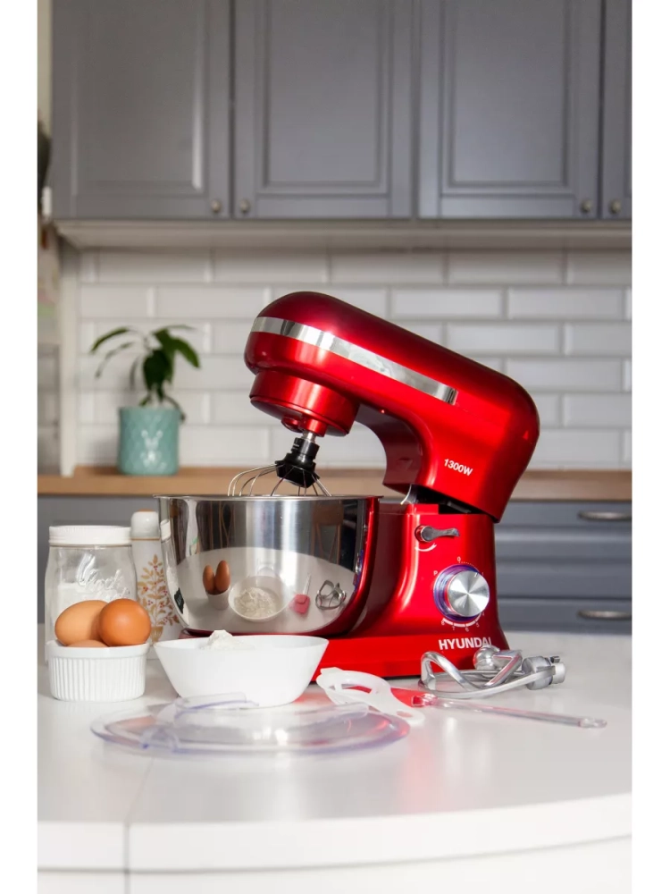 Миксер планетарный Hyundai HYM-S6451 красный, мощность 1300Вт, количество скоростей 8, насадок 3 . Комплектация: Планетарный миксер; чаша; защитная крышка; насадка-венчик; насадка-крюк; насадка-лопатка; кулинарная силиконовая лопатка; сепаратор для яиц; руководство пользователя с гаратийным талоном; книга рецептов.