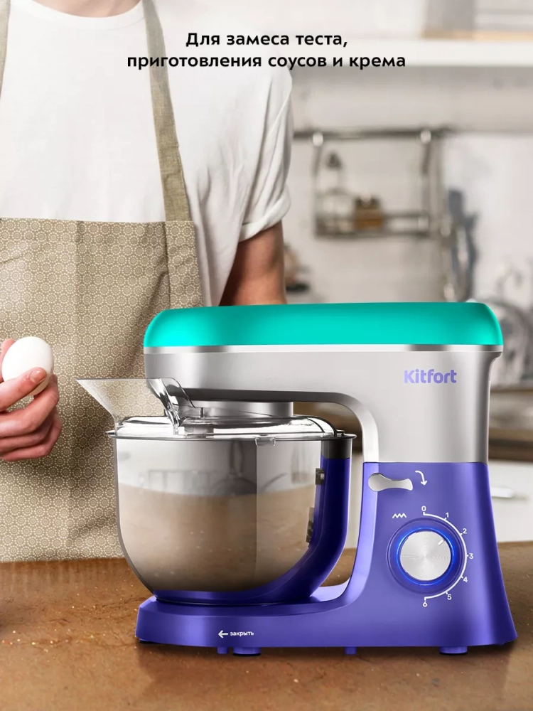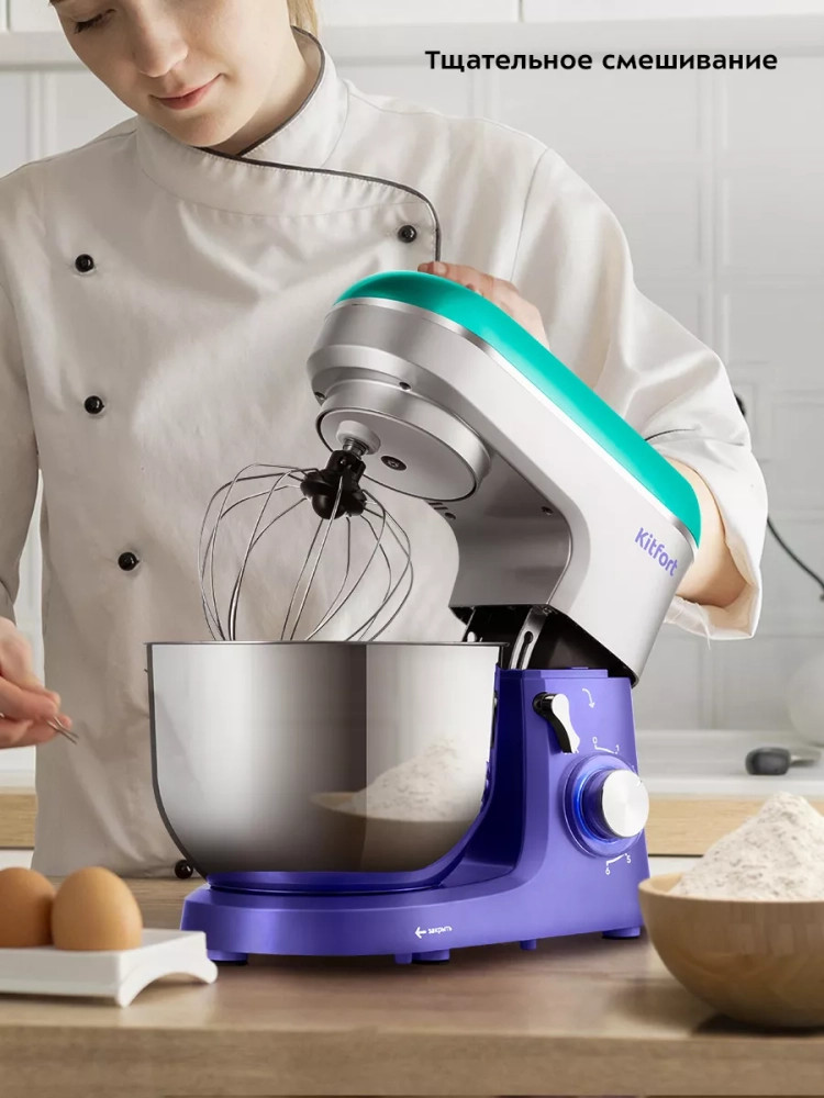 Планетарный миксер Kitfort КТ-3467 поможет вам смешать ингредиенты, взбить яичный белок или сливки, приготовить картофельное пюре, соус, крем, мусс, замесить жидкое тесто для блинов и крутое — для пельменей и пирогов.