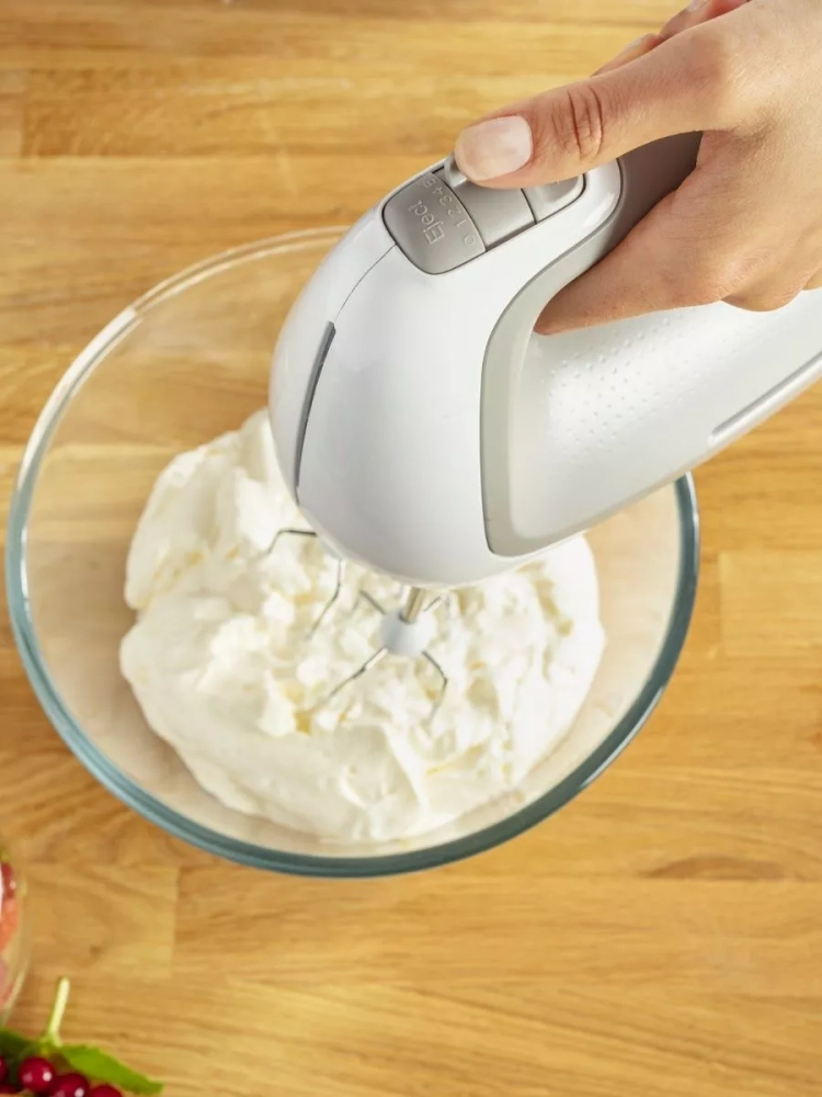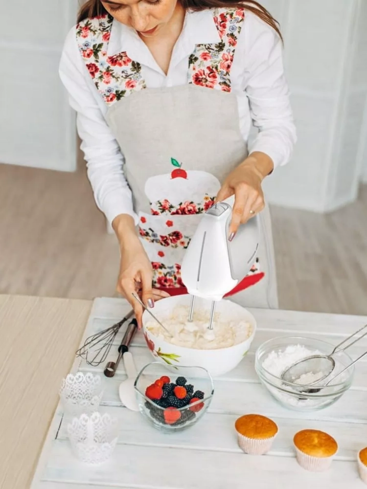 Прибор отлично справляется с приготовлением домашней выпечки, обеспечивая высокое качество смешивания как для жидких, так и для густых тестовых масс. Мощный мотор 450 Вт гарантирует высокую производительность кухонного миксера и идеальную текстуру ингредиентов. Готовьте по различным любимым рецептам – устройство имеет 5 скоростей работы и режим Turbo для комфортного использования и смесей разной плотности.