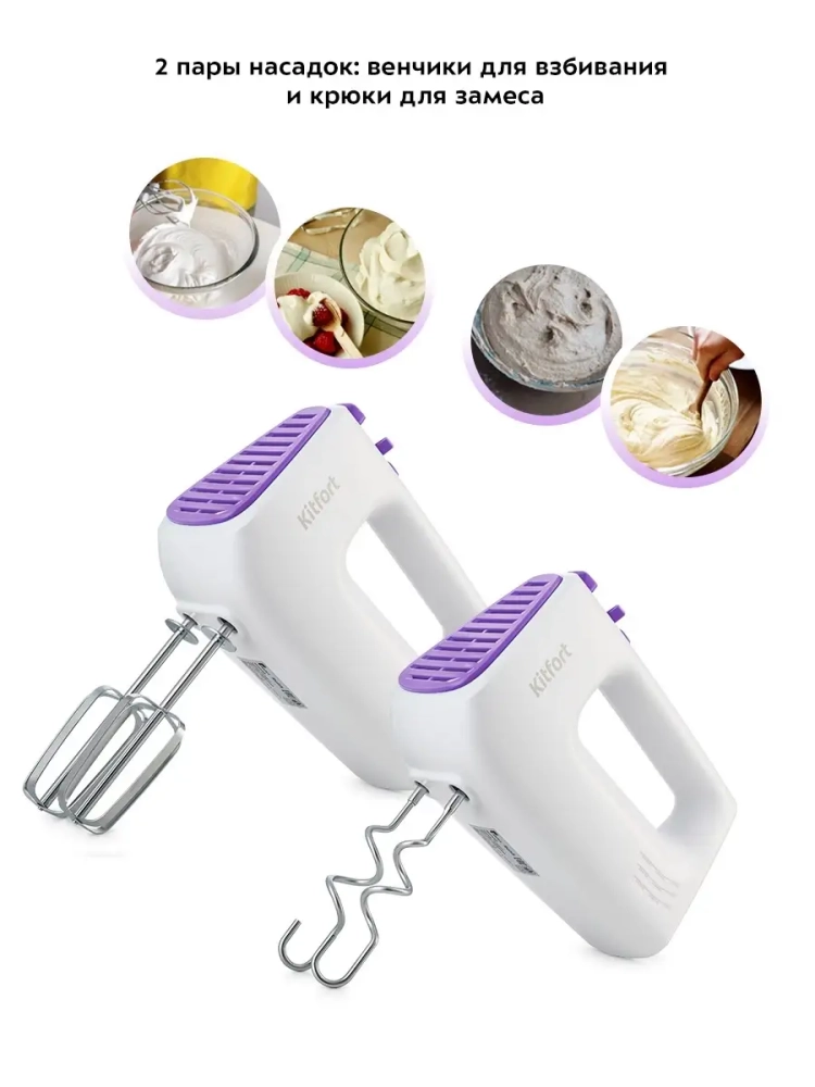 Kitfort КТ-3067 - ручной миксер, который поможет вам смешать ингредиенты, взбить яичный белок или сливки, приготовить соус, крем, мусс, замесить тесто для выпечки. Прибор оснащен двумя комплектами насадок: венчики подходят для взбивания ингредиентов и замеса жидкого теста для блинов, вафель или бисквитов, а крюки - для замеса более густого теста, например песочного или дрожжевого. Насадки легко снимаются с моторного блока, поэтому уход за устройством не составит труда. Для удобного хранения насадок в комплекте идет держатель насадок. Миксер оснащен 5 скоростями работы и турборежимом, благодаря чему вы сможете выбрать подходящую скорость для взбивания или смешивания ингредиентов. Регулятор скорости и кнопка турборежима расположены на рукоятке миксера, поэтому переключить скорость во время работы будет легко и удобно. Благодаря компактным размерам миксер Китфорт KT-3067 не займет много места на вашей кухне, а легкий вес устройства позволит сделать процесс готовки еще более приятным.