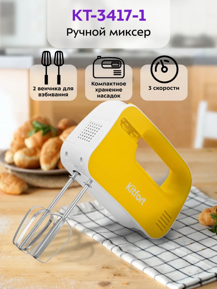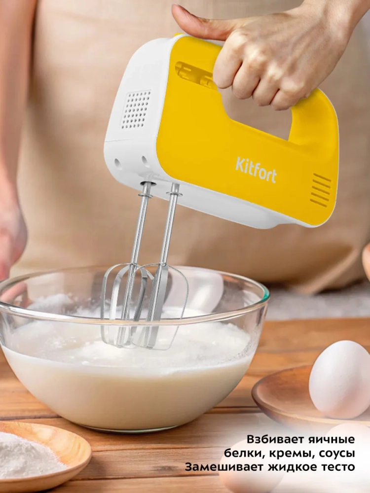 Ручной миксер Kitfort КТ-3417 поможет вам смешать ингредиенты, взбить яичный белок или сливки, приготовить соус, крем, мусс, замесить тесто для выпечки.