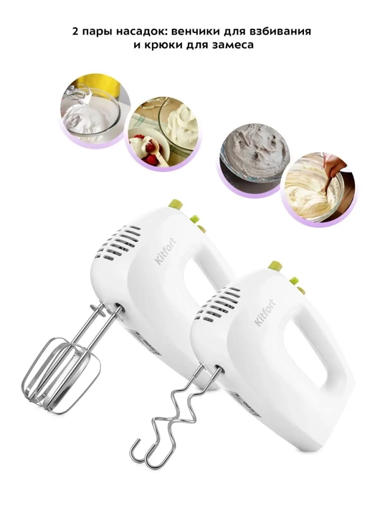 Миксер ручной КТ-3071 с венчиком и крюком для теста