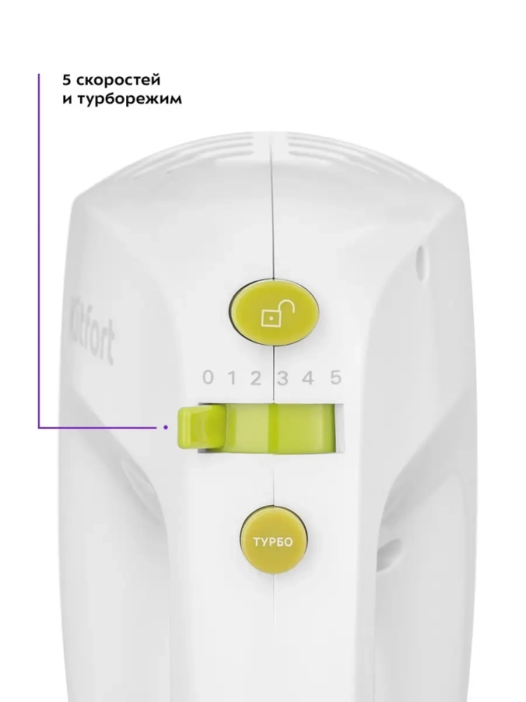 Kitfort КТ-3071 - ручной миксер, который поможет вам смешать ингредиенты, взбить яичный белок или сливки, приготовить соус, крем, мусс, замесить тесто для выпечки. Прибор оснащен двумя комплектами насадок: венчики подходят для взбивания ингредиентов и замеса жидкого теста для блинов, вафель или бисквитов, а крюки - для замеса более густого теста, например песочного или дрожжевого. Насадки легко снимаются с моторного блока, поэтому уход за устройством не составит труда. Миксер оснащен 5 скоростями работы и турборежимом, благодаря чему вы сможете выбрать подходящую скорость для взбивания или смешивания ингредиентов. Миксер прост в управлении: установите подходящую пару насадок, выберите нужную скорость с помощью регулятора и приступайте к приготовлению любимых блюд. Благодаря компактным размерам миксер Китфорт KT-3071 не займет много места на вашей кухне, а легкий вес устройства позволит сделать процесс готовки еще более приятным.