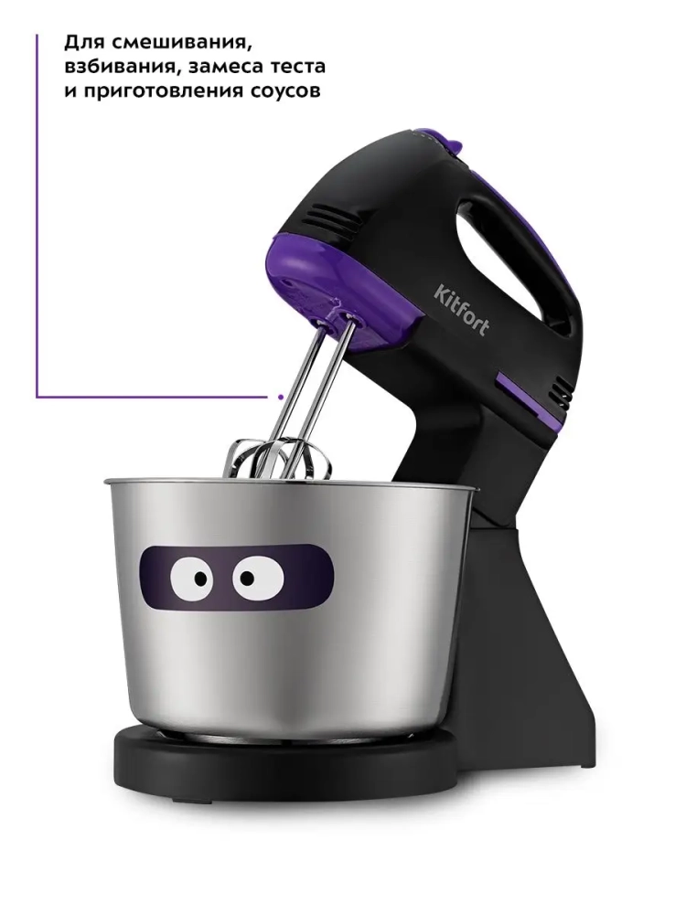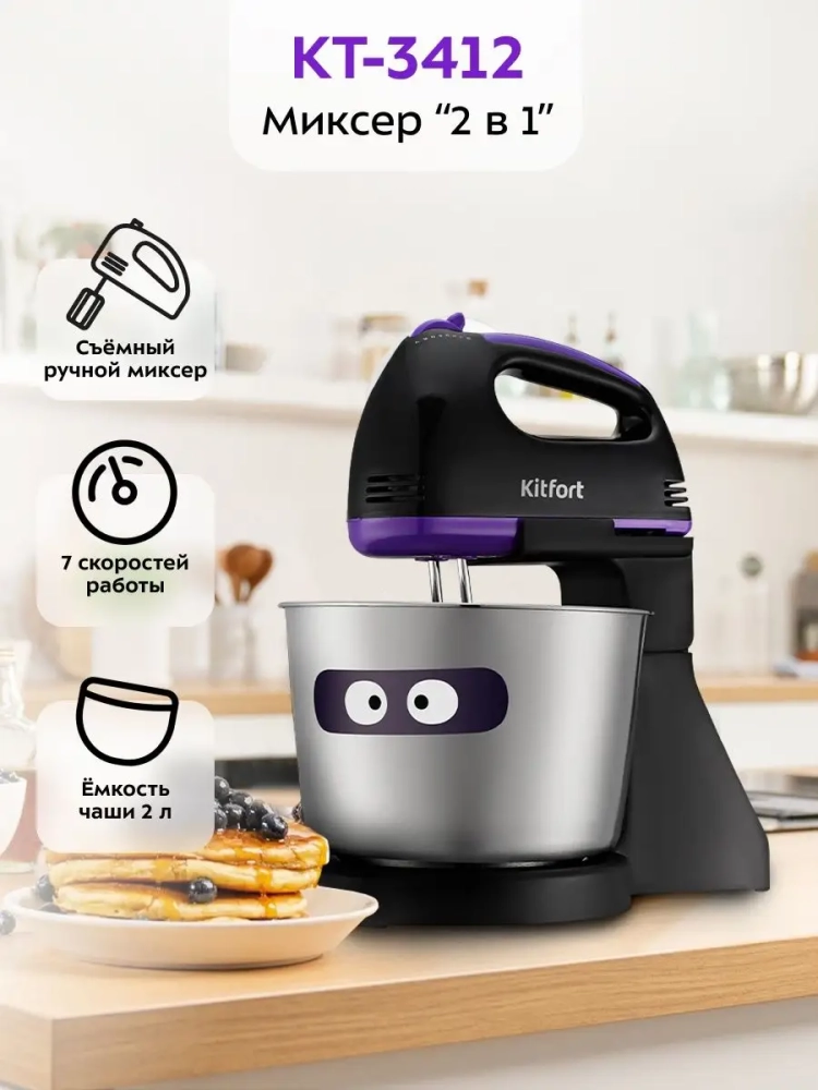 Миксер Китфорт «2 в 1» КТ-3412 — это прибор, который совмещает в себе свойства ручного миксера и стационарного миксера с чашей. Он поможет вам смешать ингредиенты, взбить яичный белок или сливки, приготовить соус, крем, мусс, замесить тесто для выпечки.