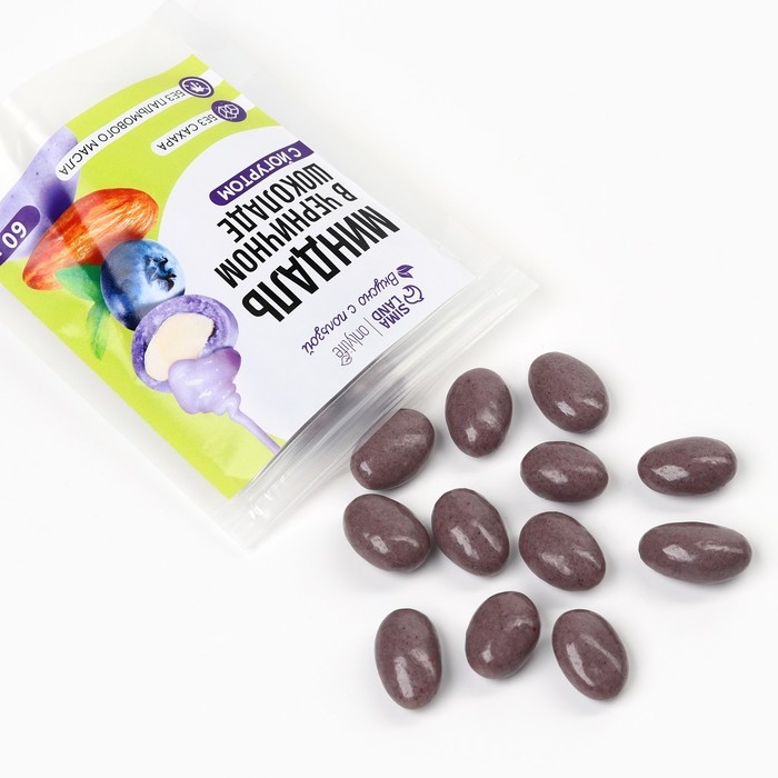 Миндаль в черничном шоколаде с йогуртом, БЕЗ САХАРА, 60 г.