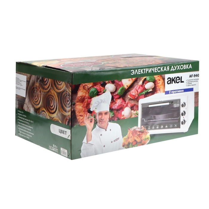 Мини-печь AKEL AF-940, 1300 Вт, 45л, 50-320°С, таймер, гриль, серебристая