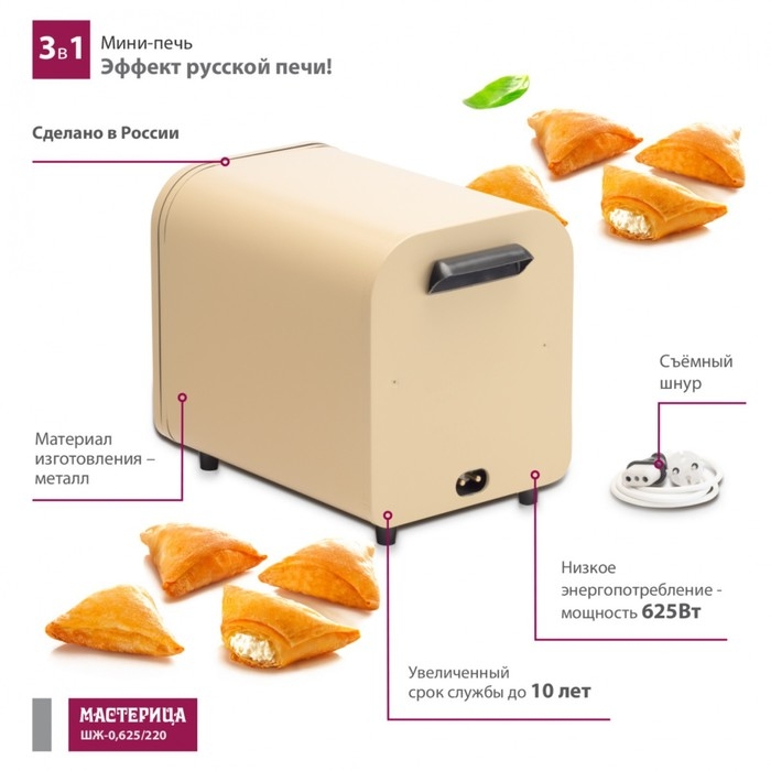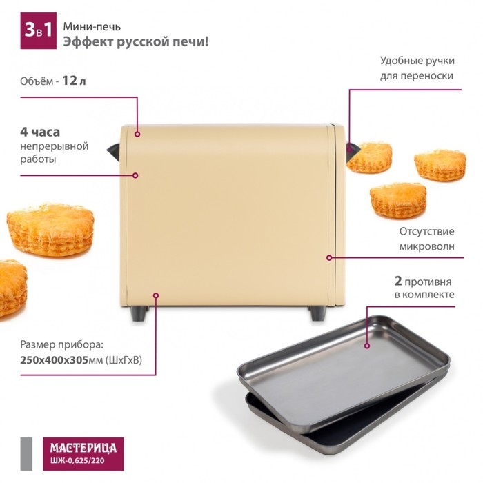 Мини-печь «Мастерица ШЖ-0,625/220», 625 Вт, 12 л, цвет бежевый