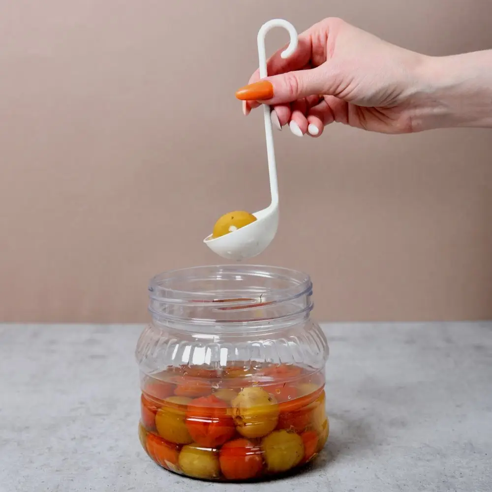 Мини-половники помогут вычерпать маринады и содержимое консервных банок. Небольшие размеры позволяет разливать жидкости в узкие емкости и стаканы. Специальные скошенные края помогают вычерпывать жидкость даже со дна емкостей.