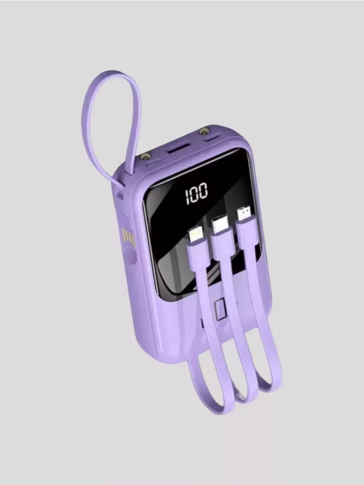 Мощный и компактный Power Bank с ёмкостью 20000mAh - идеальный выбор для активных людей, ценящих надежность и удобство. Он сочетает в себе мощность, компактность и функциональность, что делает его незаменимым аксессуаром в нашем быстро меняющемся мире. Если вы не хотите зависеть от розеток и беспокойства о разряженных гаджетах, то этот пауэрбанк с зарядкой идеальное решение. Встроенные кабели MICRO-USB, TYPE-C и LIGHTNING, решают проблему лишних проводов и адаптеров. Вам не нужно носить с собой отдельные зарядные устройства - этот павер-банк поддерживает все современные стандарты зарядки (подойдёт для смартфонов на базе айфон или андроид) Заряжайте до 4-х устройств одновременно и никогда не беспокойтесь о том, что ваш смартфон, планшет или наушники окажутся без энергии. Повер-банк обеспечит вам надежную зарядку в любое время. Если ваша работа связана с постоянными поездками или активными деловыми встречами он поможет вам оставаться на связи и решать все задачи, не беспокоясь о том, что устройства могут разрядиться. Устройство имеет встроенный фонарик, который активируется при длительном нажатии кнопки питания. Это - не просто приятная добавка, а действительно полезная функция, которая окажется незаменимой в походе или путешествии в ночное время или в условиях плохой видимости. Несмотря на свою огромную ёмкость, этот павербанк очень компактен и лёгок. Его размеры позволяют носить его с собой в сумке, рюкзаке или даже в кармане, не чувствуя тяжести. Вы можете смело брать его в поездки, на работу, в университет или на прогулки, не беспокоясь о том, что он займёт слишком много места.