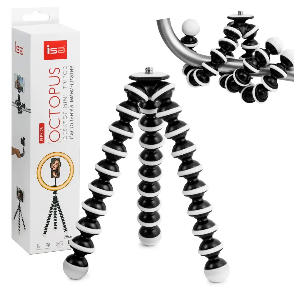 Мини-штатив FLEX-25 ISA 2в1 (для телефона и фотоаппарата) (100 шт/кор)