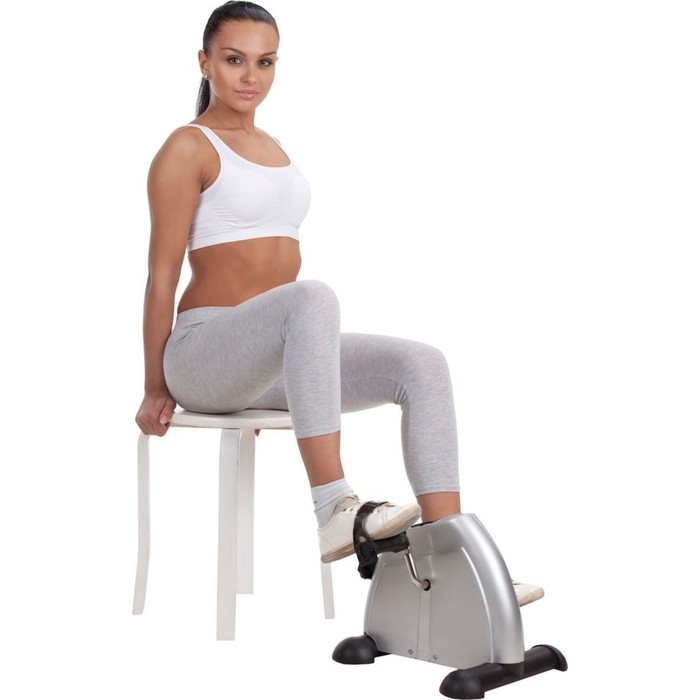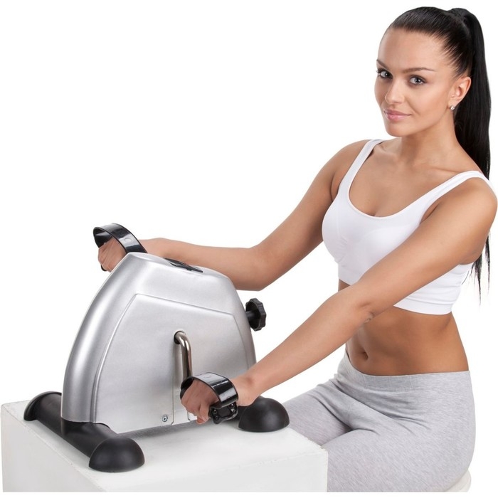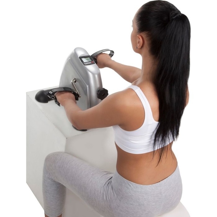 Для тренировки мышц ног, ягодиц и бёдер расположите тренажёр на полу. Сядьте на невысокий стул рядом, поставьте ноги на педали и крутите их. Для тренировки рук и плечевого комплекса расположите тренажёр на столе. Сядьте напротив и крутите педали руками.
