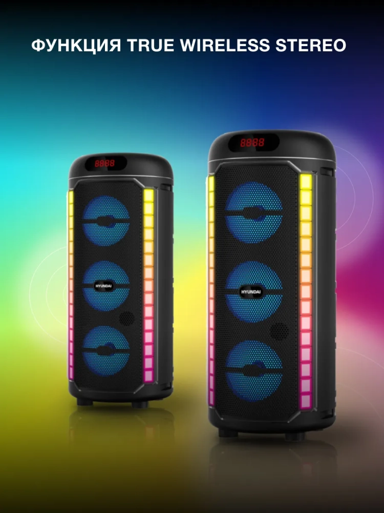 Минисистема Hyundai H-MC1221 черный, мощность 15Вт, поддержка карт памяти SD/MMC, интерфейс USB. Подсветка.