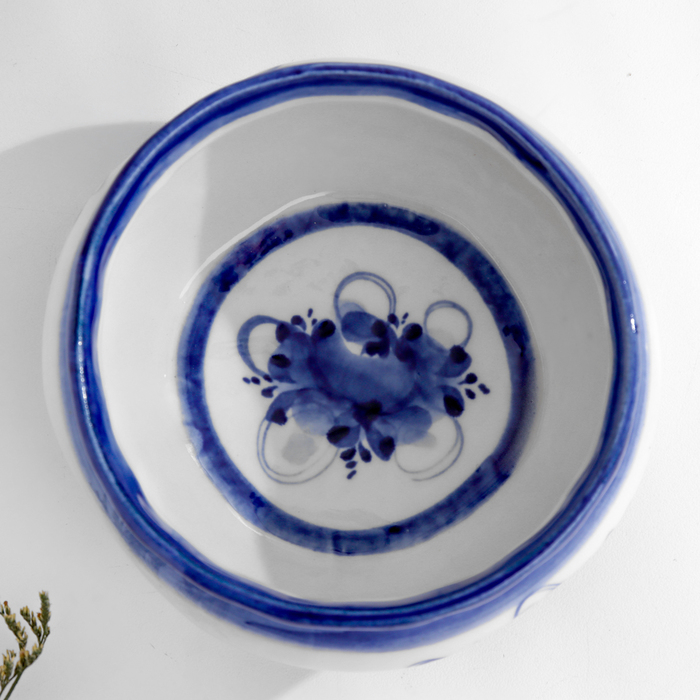 Миска-бульонница, гжель, фарфор, автор Окулова, 6х11 см